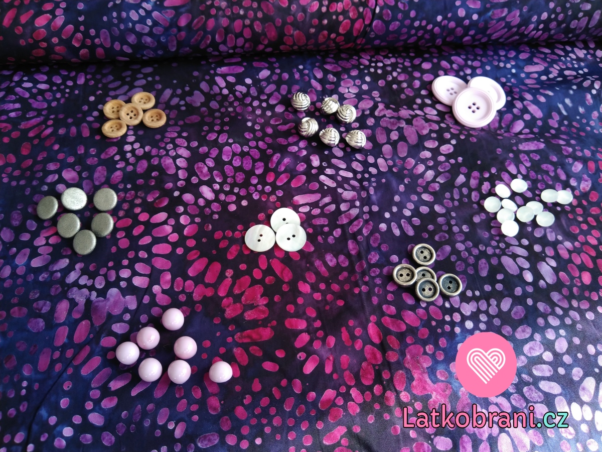 Knoflík kulatý s ozdobným okrajem růžovo-fialkový