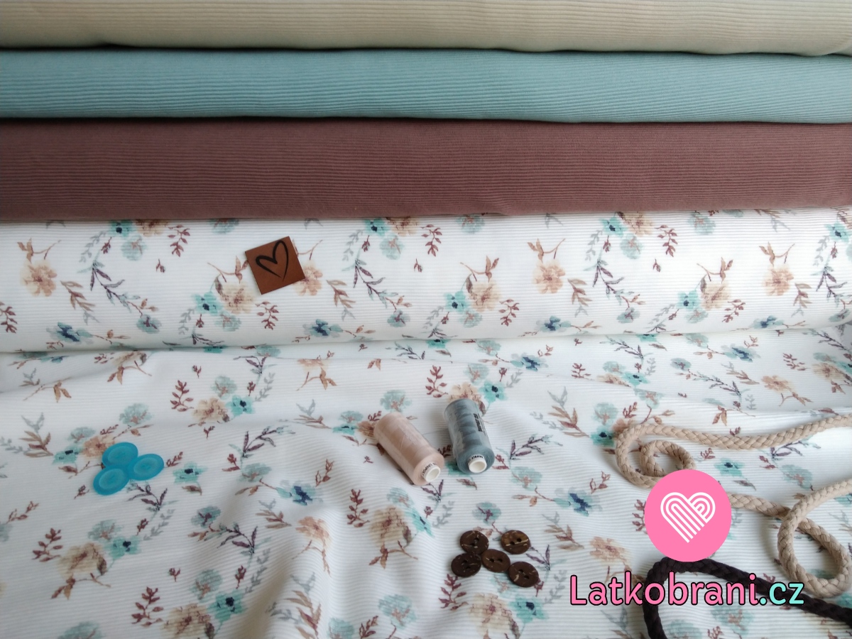 Žebrovaný úplet (ottoman) potisk modré kytičky na bílé
