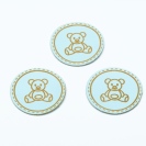 Štítek na oblečení kulatý "medvídek", koženkový, imitace kůže, modrý