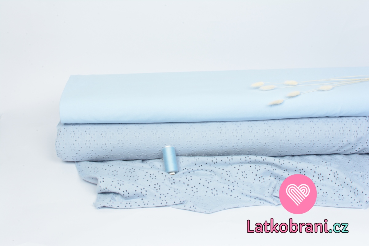 Úplet s dírkovanou výšivkou (madeira) jednobarevný modrý jeans
