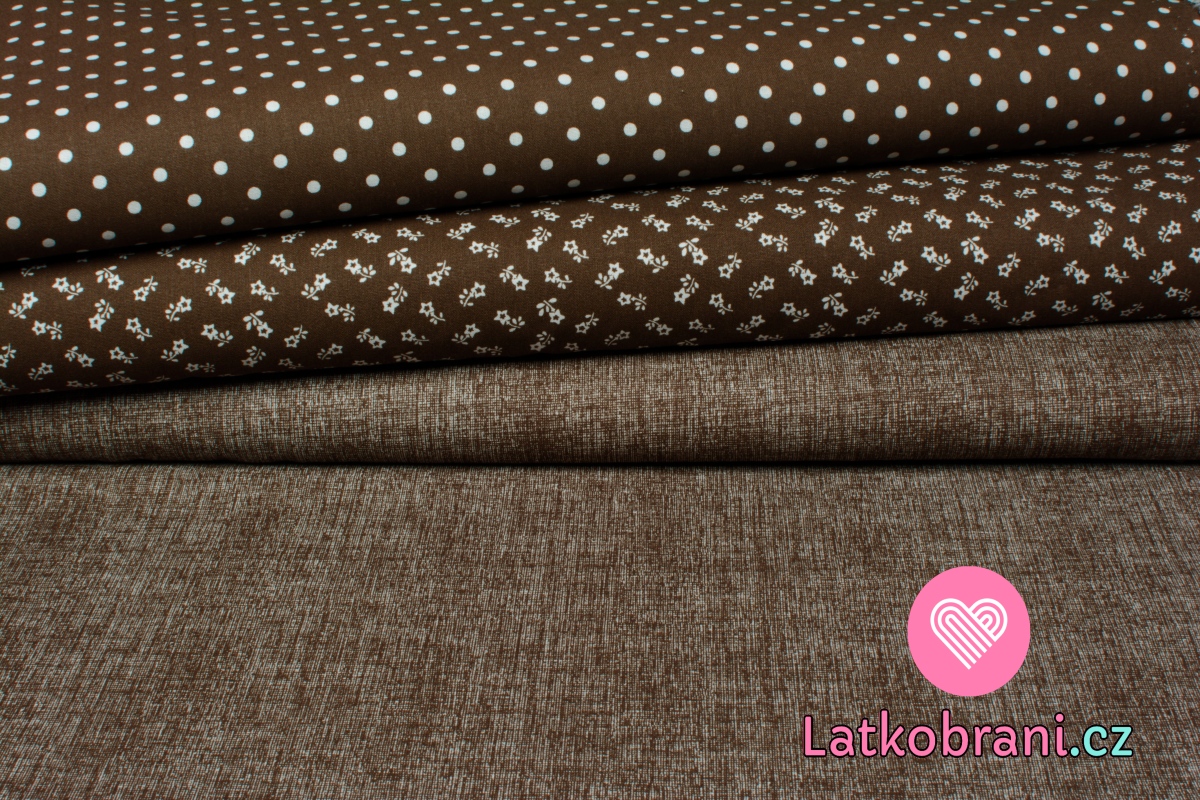 Bavlněné plátno potisk bílé puntíky na hnědé