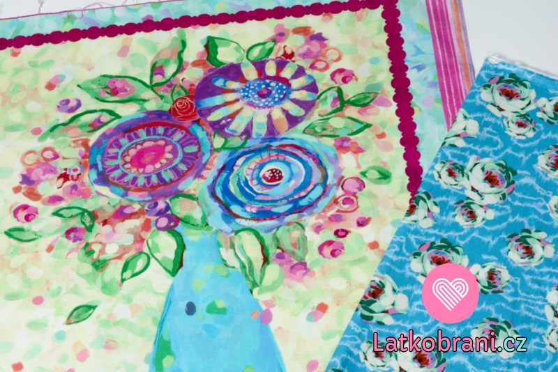 Bavlněné plátno potisk květy: rozměry 95x110 cm, 180 g/m²