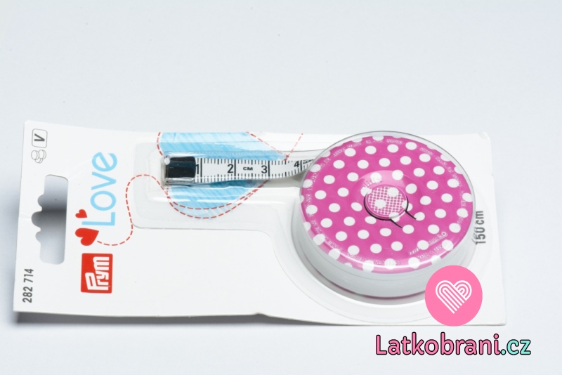 Kolekce Prym LOVE. Krejčovský samonavíjecí metr, škála 150 cm z obou stran.