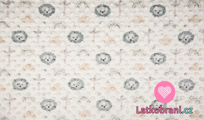 Krásný dětský vzor plný lvích hlaviček, duh a palmiček okouzlí všechny dětské dušičky... :-)