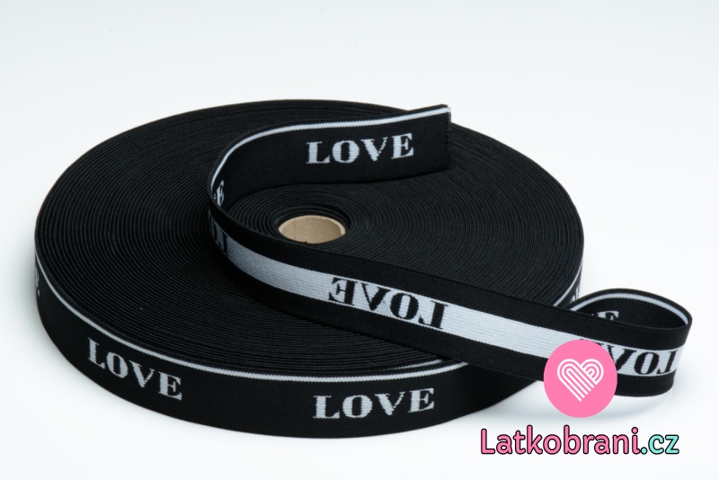 Pruženka bílý text "LOVE" na černé