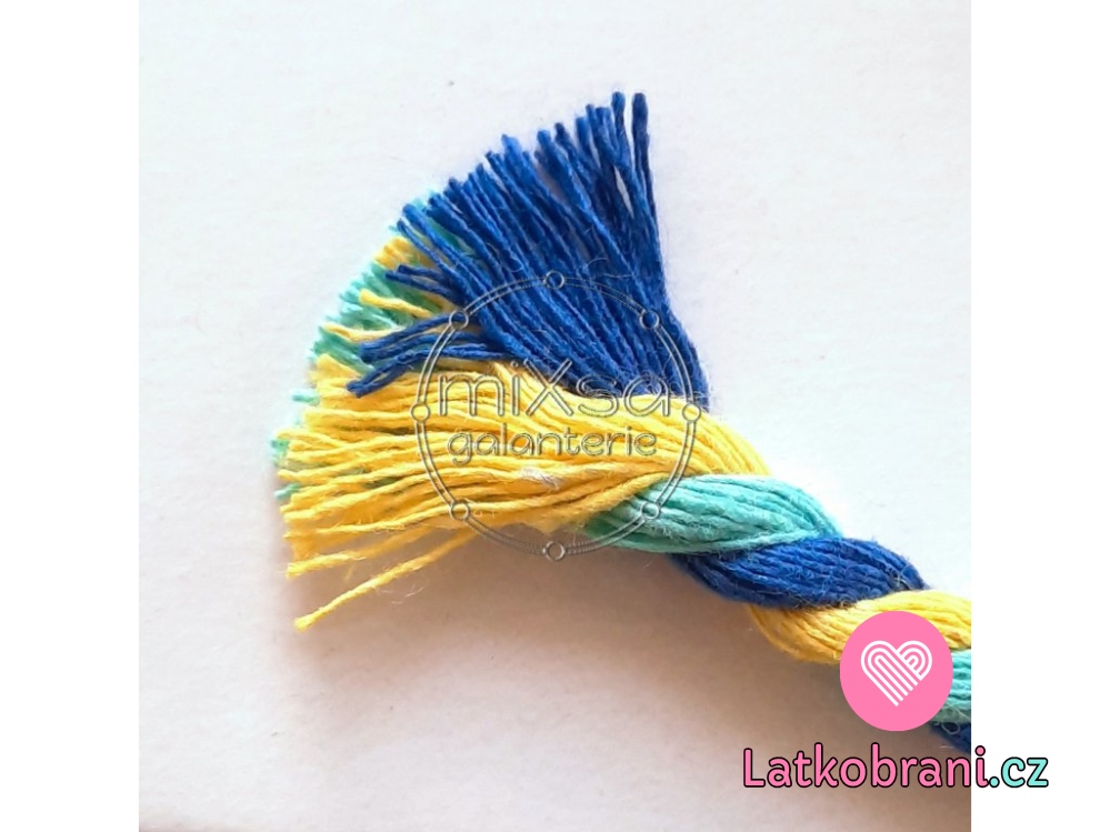 Šňůra bavlněná kroucená 6mm Modrá/Mint/Žlutá