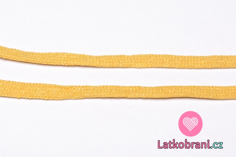 Plochá bavlněná šňůra s dutinkou. Vhodná do tunýlků mikin, tepláků i bund. Je pevná a odolná. Využijete i na výrobu dekorací. Složení: 50% bavlna 50% polyester
