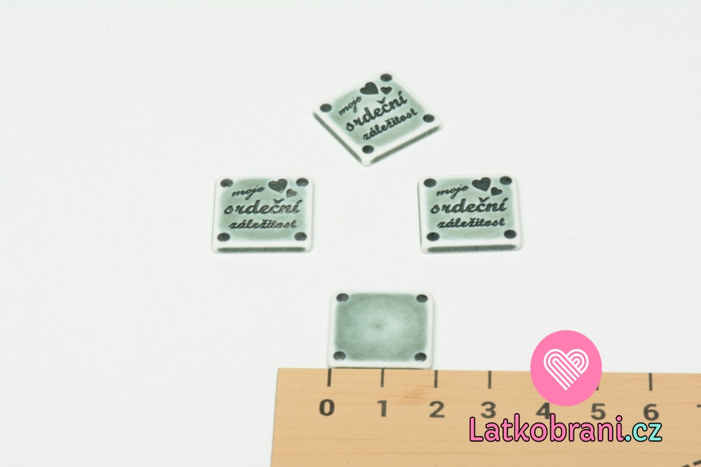 Štítek na oblečení čtverec "Moje srdeční záležitost", plastový, mintový