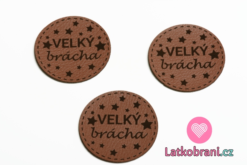 Štítek na oblečení kulatý "velký brácha", koženkový, imitace kůže