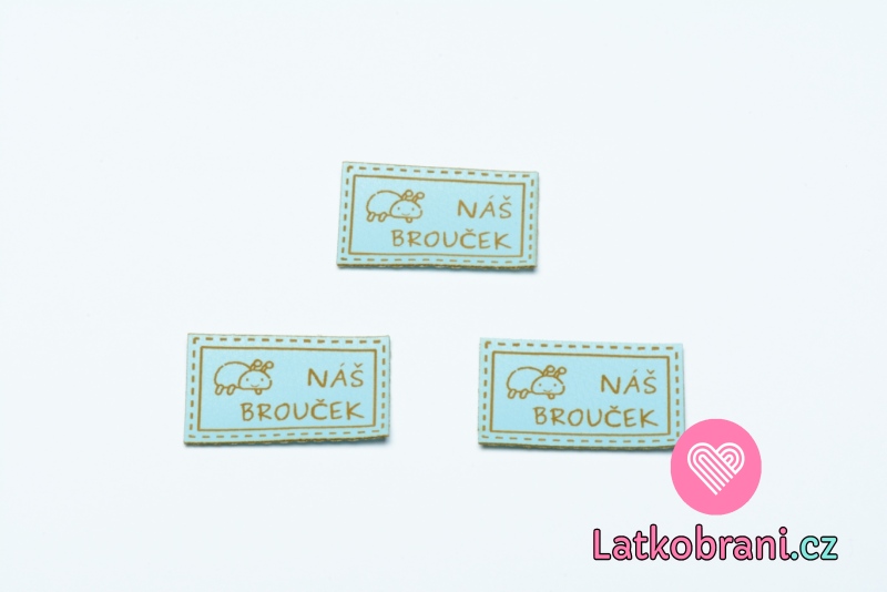 Elegantní obdélníkový štítek na oblečení s broučkem a nápisem "náš brouček".