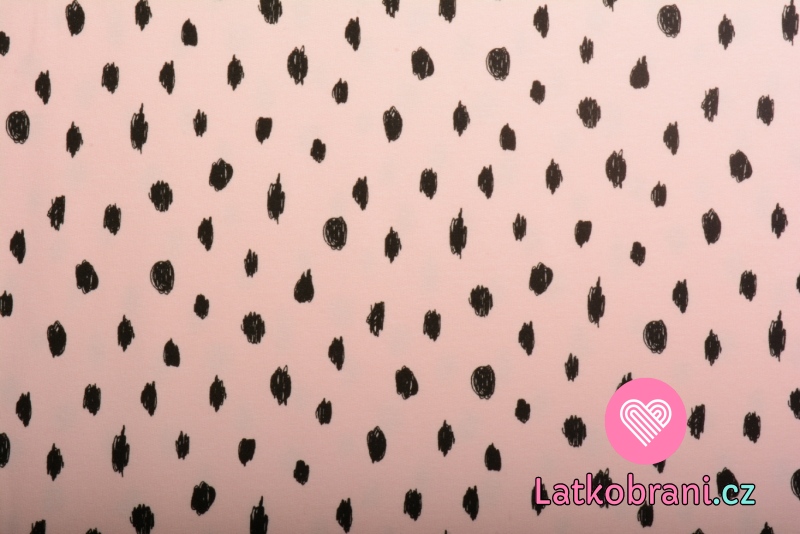Teplákovina počesaná nepravidelné černé puntíky na růžové, BIO
