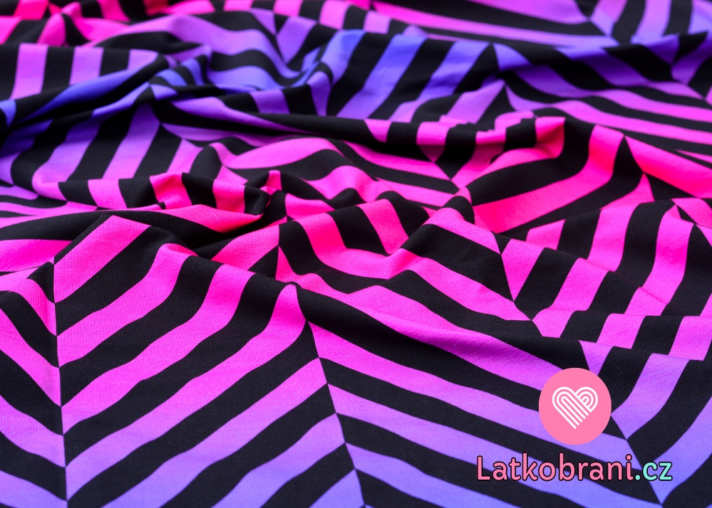 Teplákovina potisk cik-cak fialovo - růžový, lehce počesaná