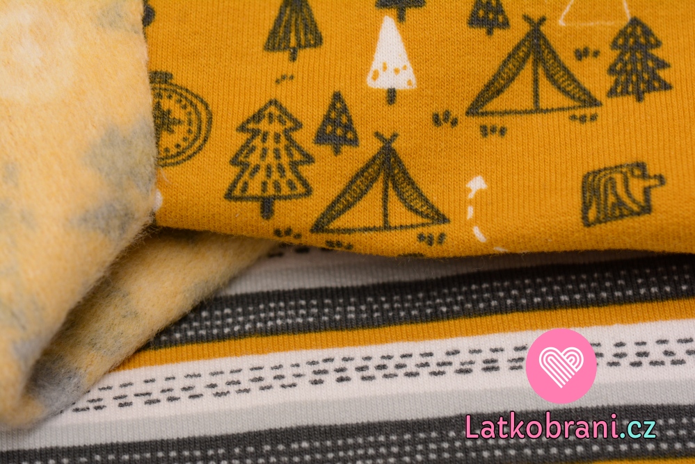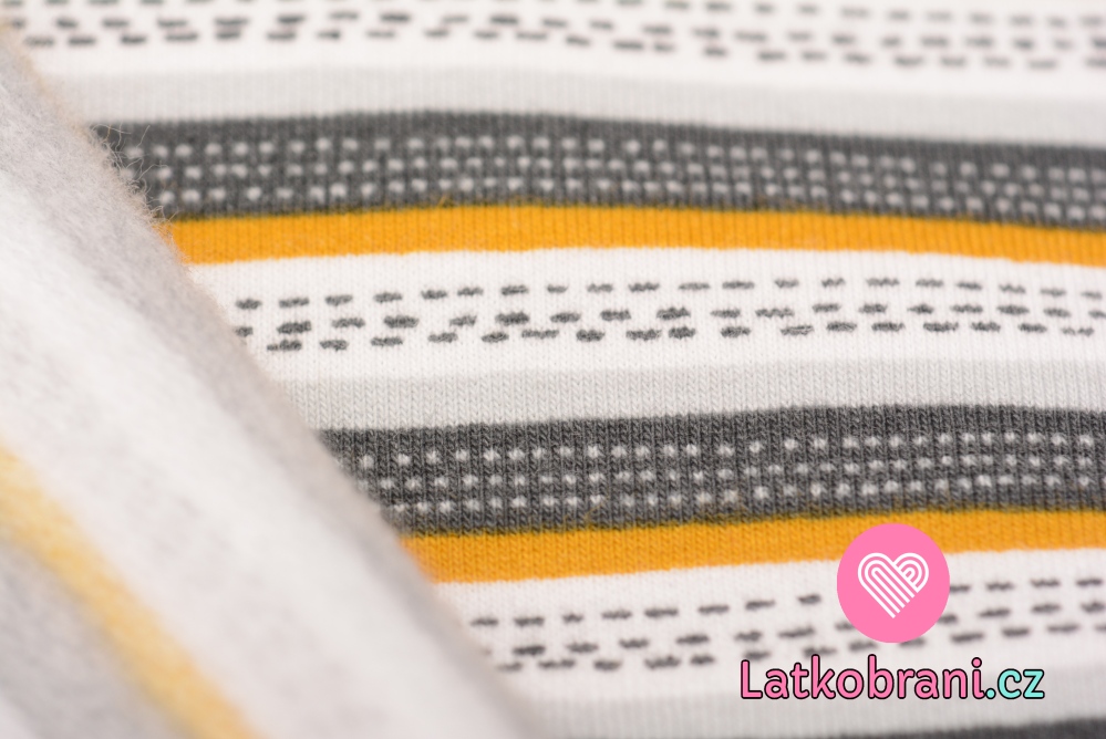 Teplákovina počesaná pruhy šedé, hořčicové, bílé