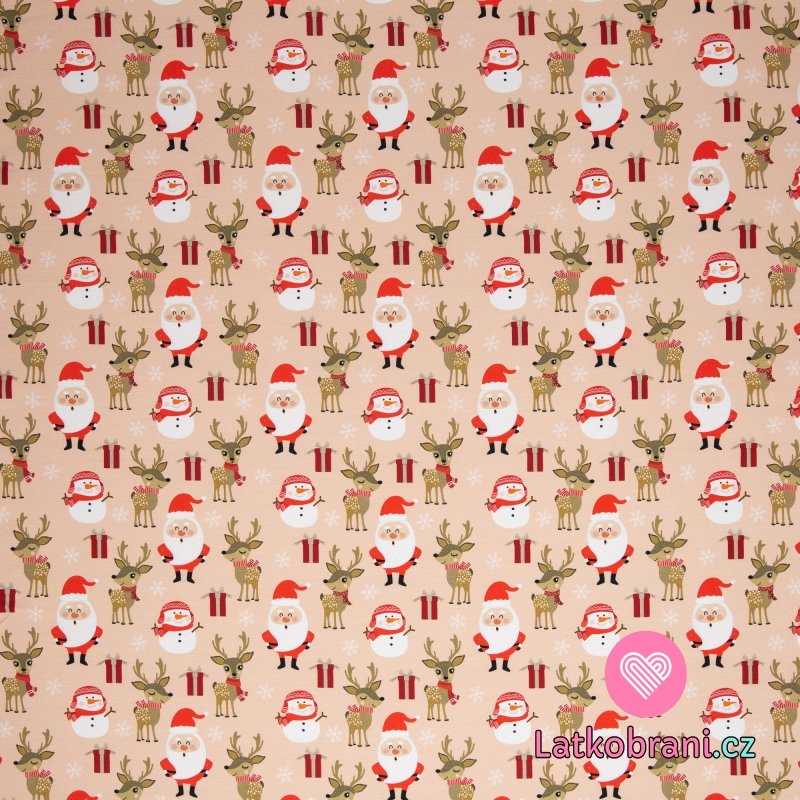 Teplákovina počesaná Santa se srnečkem na světle meruňkové