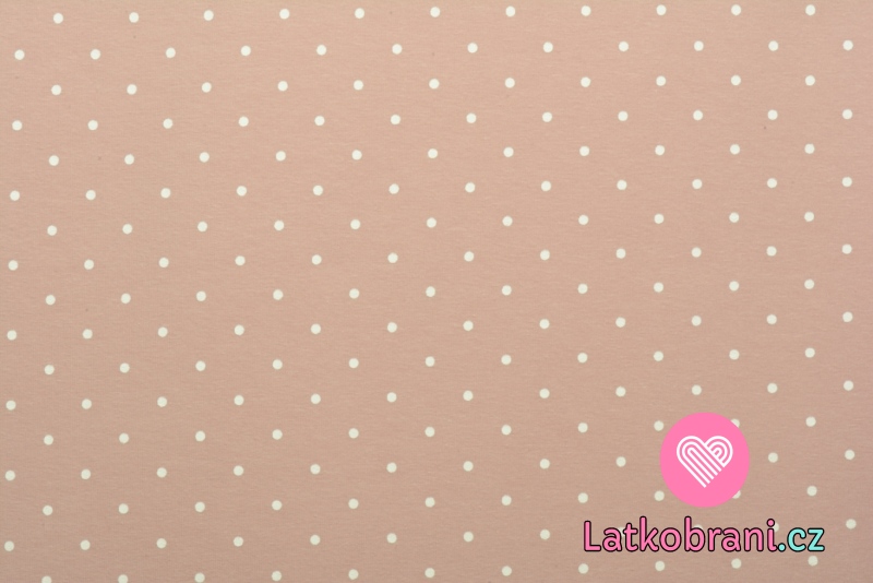 Teplákovina potisk bílý puntíček na pudrově růžové