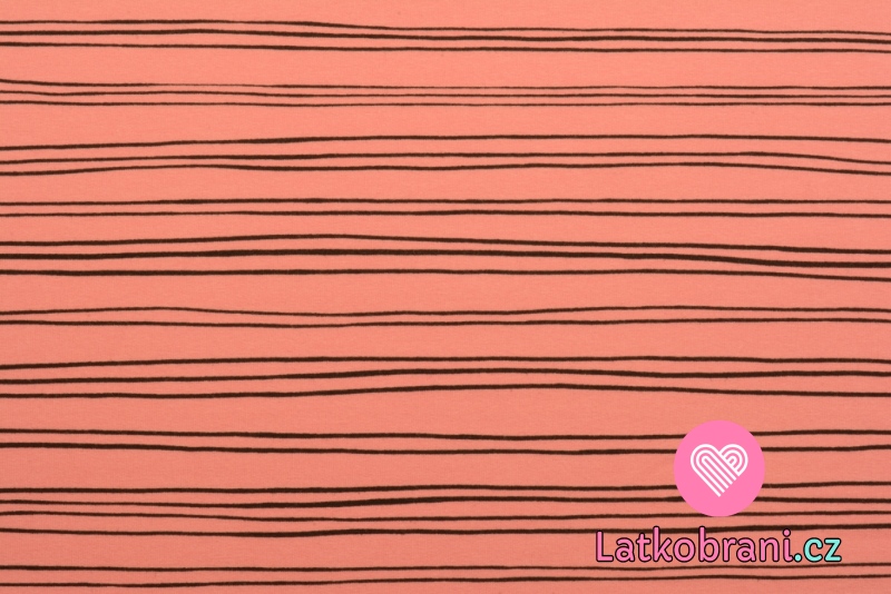 Teplákovina počesaná potisk nepravidelné proužky na růžové, BIO