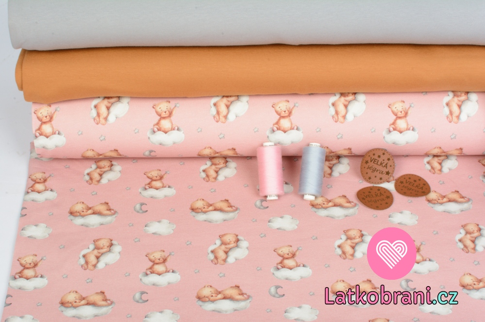 Třída 1 - Oděvy pro děti do 3 letMotiv spícího medvídka vykouzlí všem snílkům úsměv na tváři.:-) Ušijte holčičkám třeba tepláčky z této příjemné a kvalitní teplákoviny a úspěch budete mít zaručen. V této teplákovině se budou cítit jako na obláčku.:-)