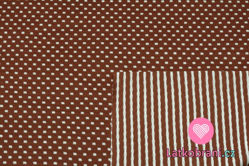 Úplet oboustranný cihlový s ecru proužky/čtverečky