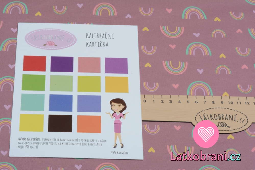 Úplet potisk barevné duhy a srdíčka na tmavě růžové