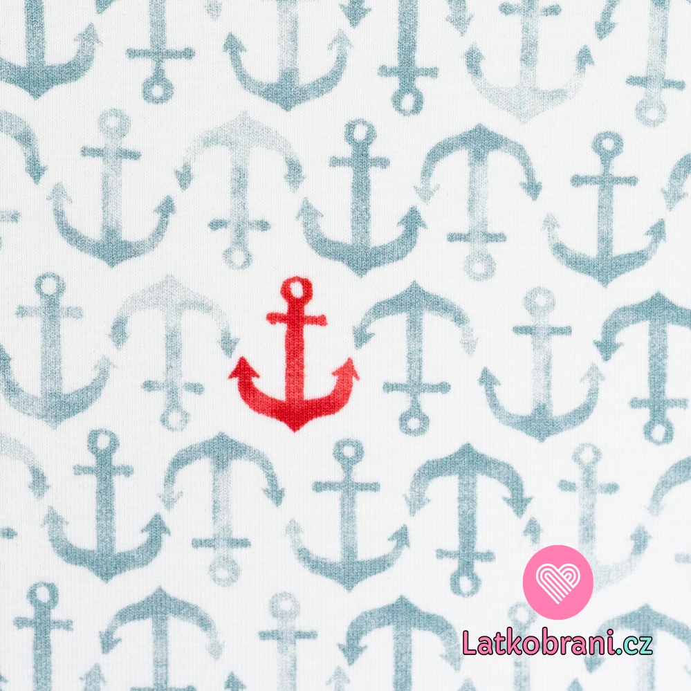 Úplet potisk červené kotvičky mezi modrými na bílé