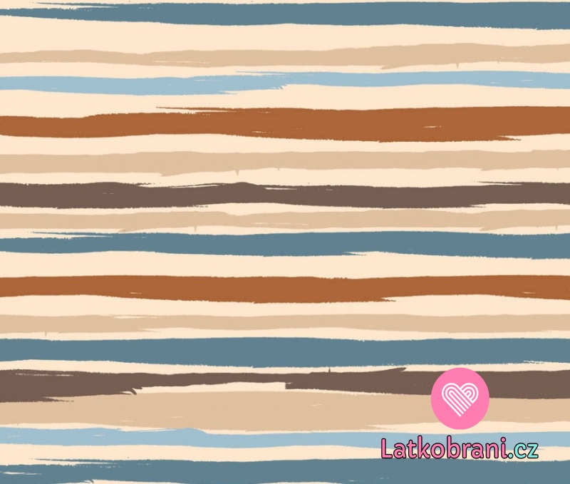 Úplet potisk hnědé a modré proužky na béžové