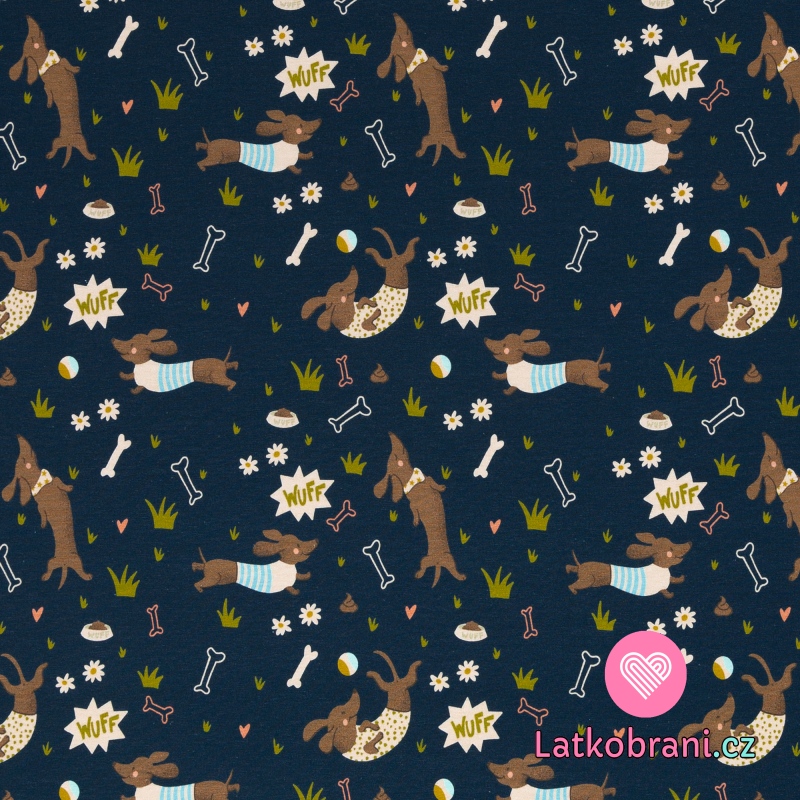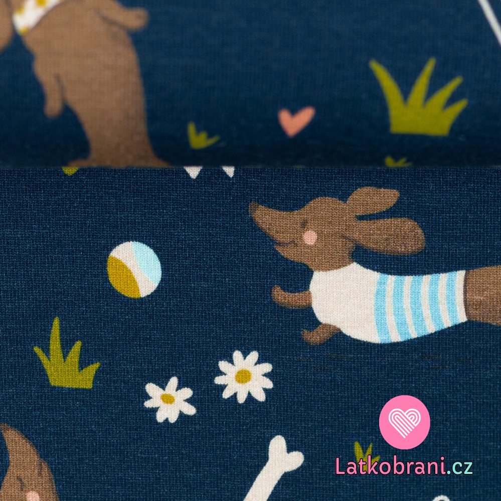 Úplet potisk neposední jezevčíci na tmavě modré