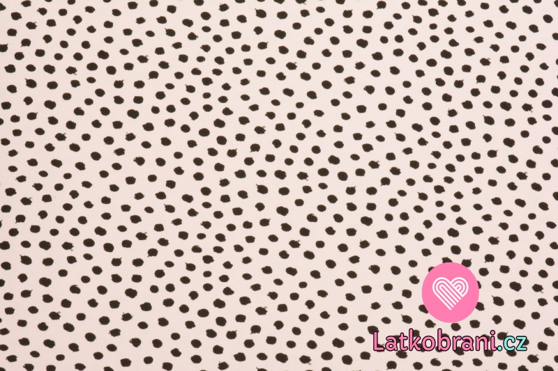 Úplet potisk nepravidelné černé puntíky na světle růžové, BIO