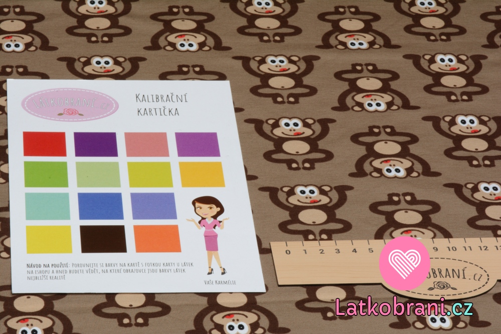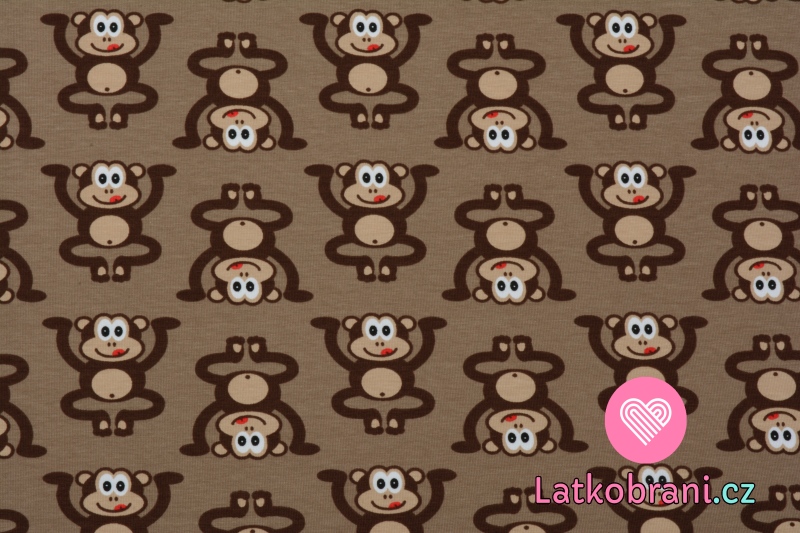 Jedná se o úplet s dětskou tématikou. Textilie pruží do stran (ve směru osnovy a útku), díky příměsi elastenu, ten dodává materiálu pružnost. Na omak je hladký, pevnější. S tímto vzorem opiček vytvoříte ve městě, u babičky i v obchodě velkou parádu.