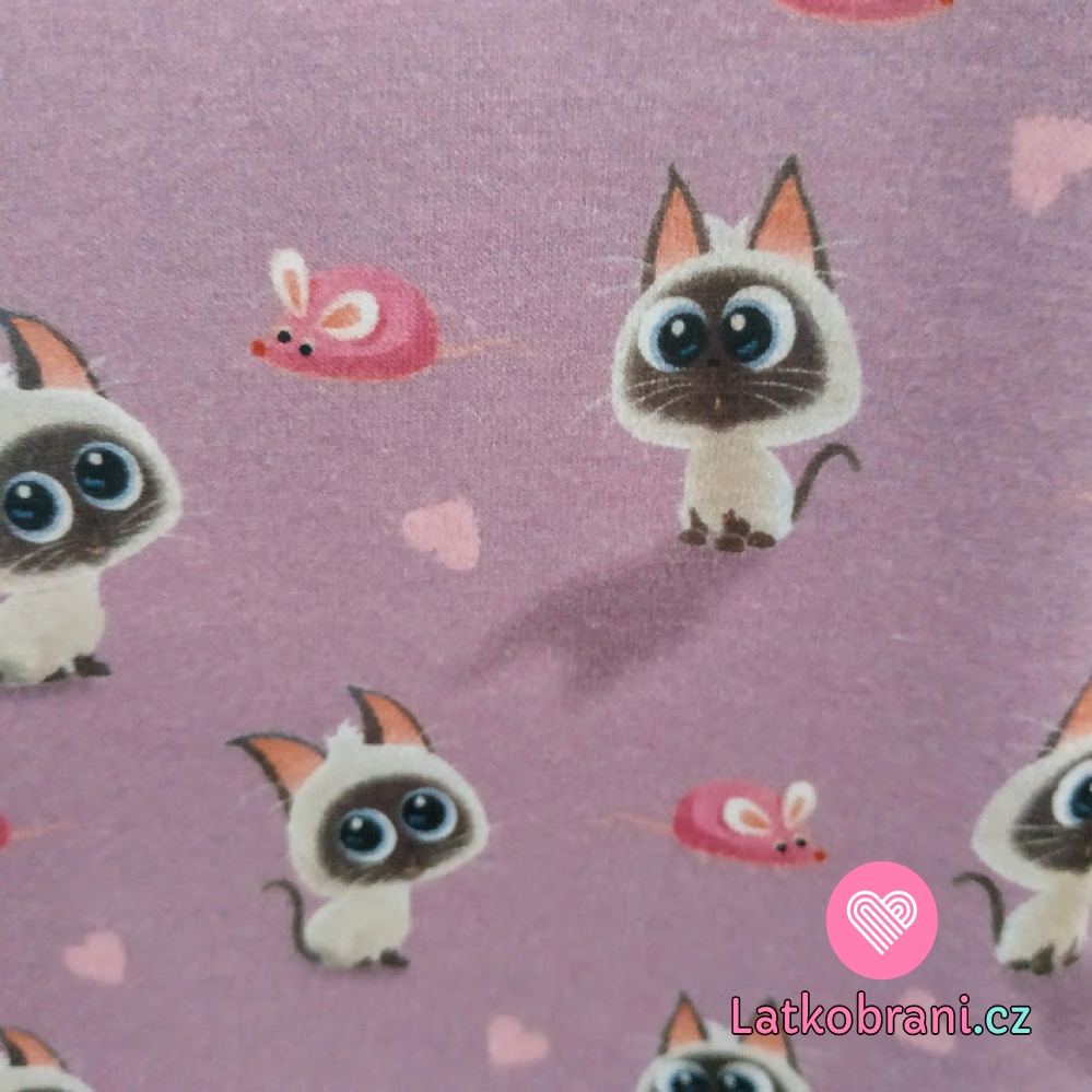 Úplet potisk roztomilá koťátka a myšky na růžovo-fialové