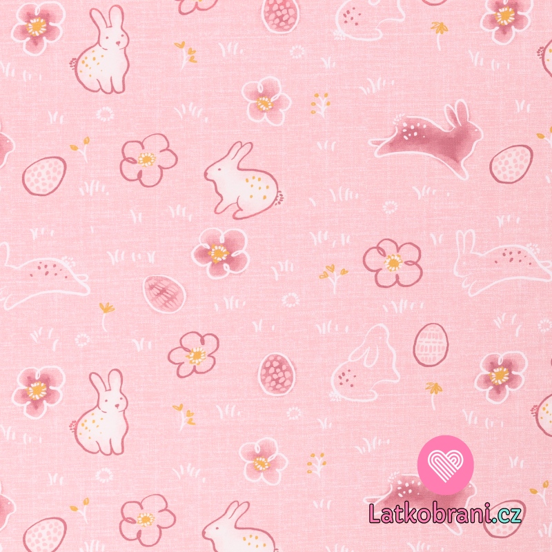 Úplet potisk velikonoční zajíček a vajíčka mezi květy na růžové