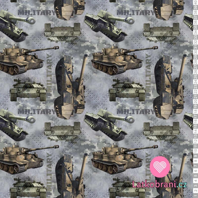 Třída 1 - Oděvy pro děti do 3 letVojenská bitva může začít... Tento vzor s parádními vojenskými tanky potěší všechny malé i velké vojáky.:-) Ideální na tvorbu párového oblečení pro nadšené tatínky a jejich syny.