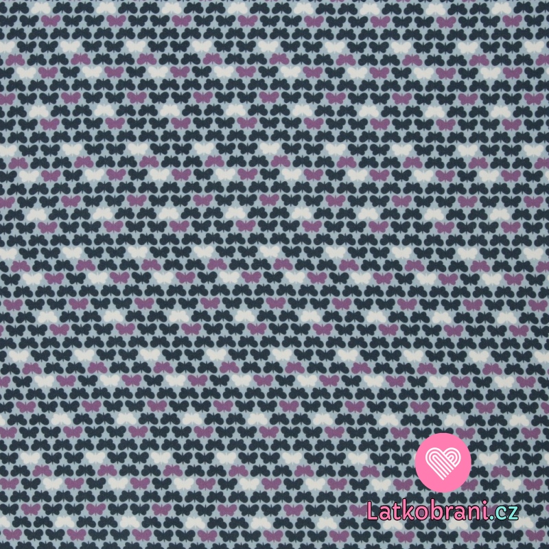 Viskóza drobní barevní motýlci na modré