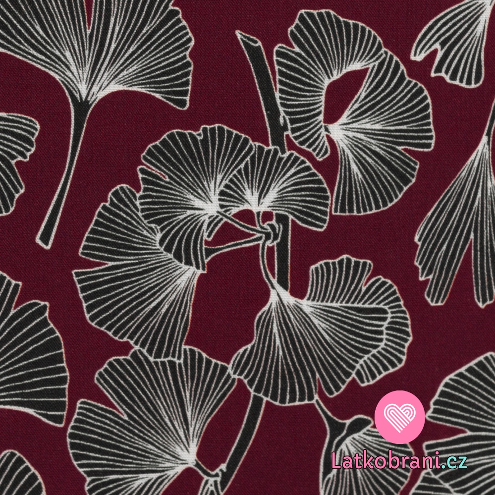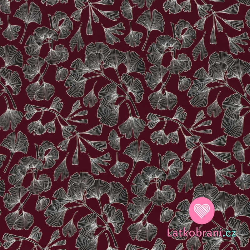 Viskóza potisk lístky ginko na bordové