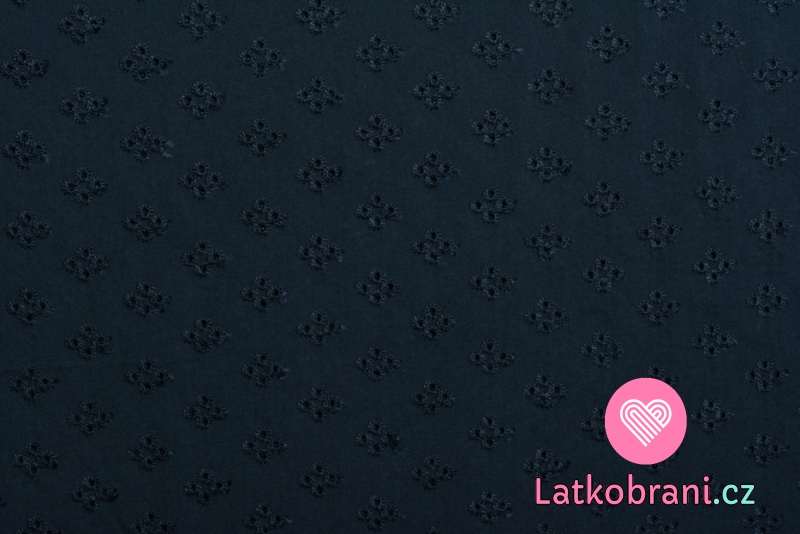 Viskóza s dírkovanou výšivkou kytiček na námořnické modré