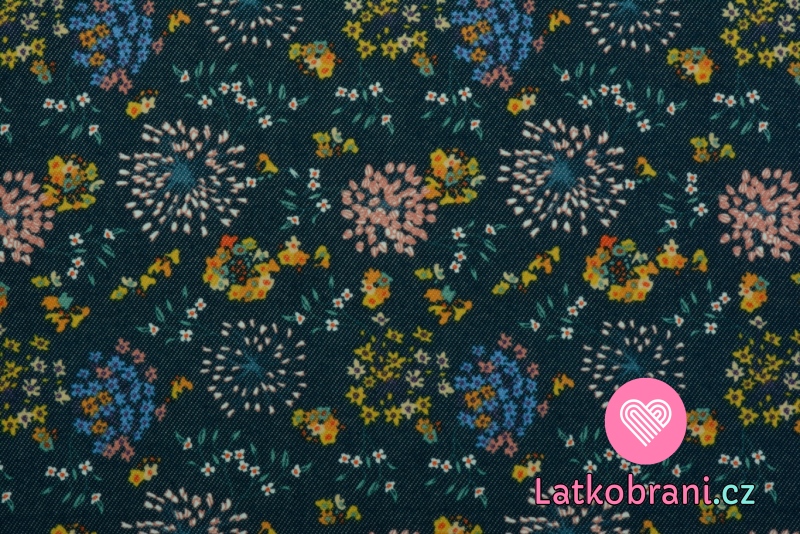 Warmkeeper potisk džínový efekt s kytičkami do žluta na tmavě modré