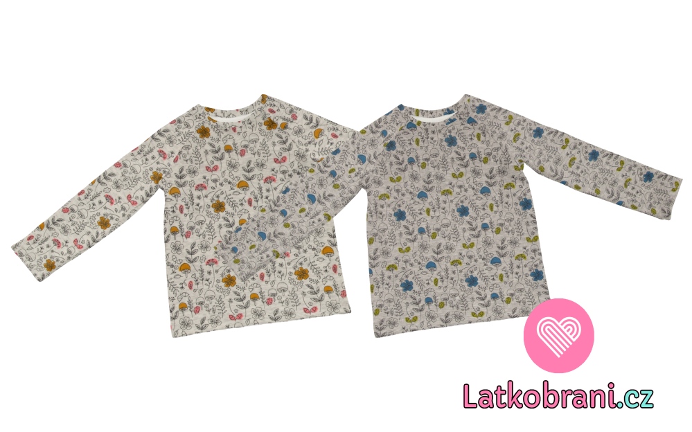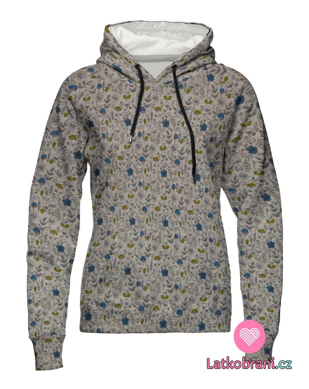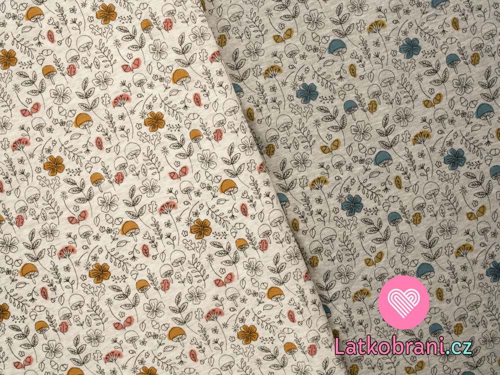 Warmkeeper potisk modré houbičky s přírodními motivy na šedém melé