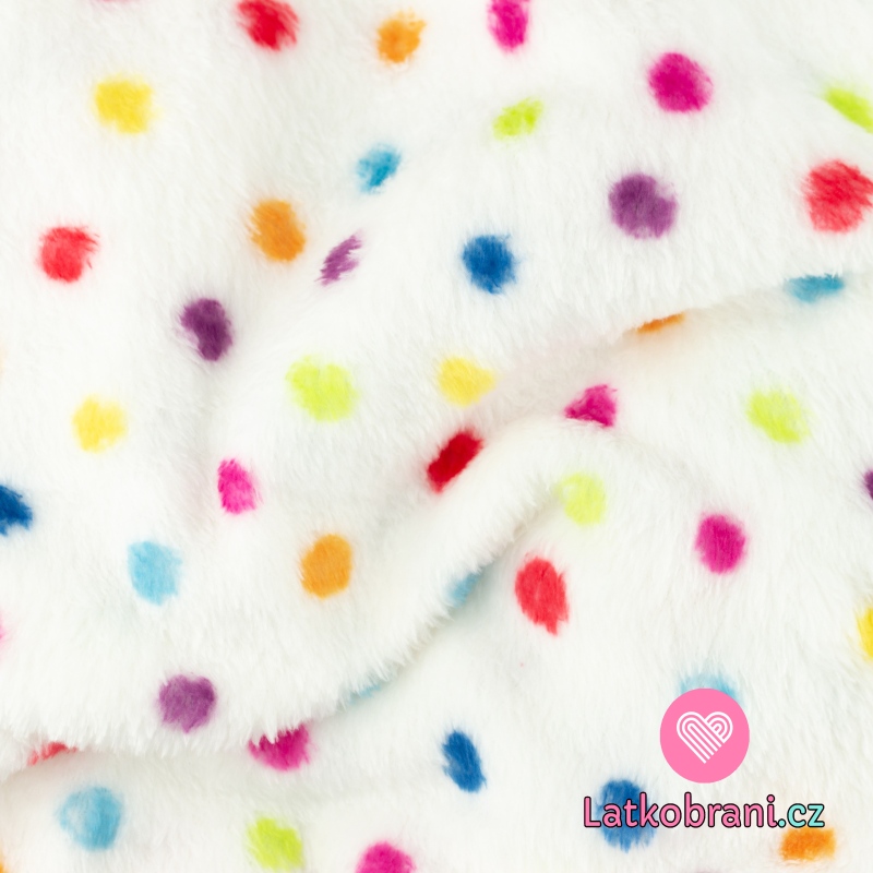 Wellness fleece nepravidelné barevné puntíky na bílé